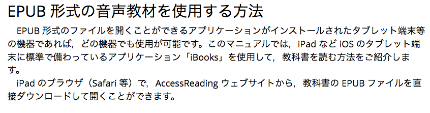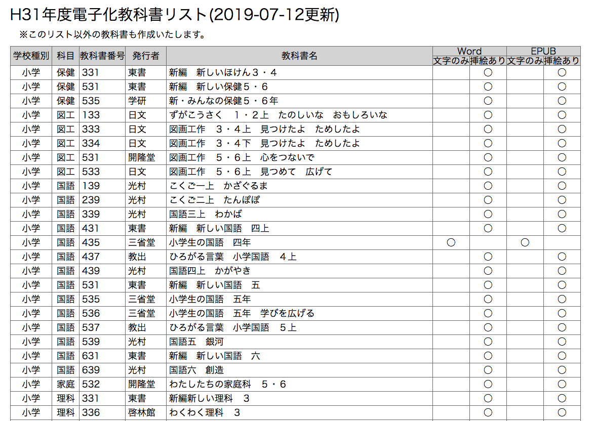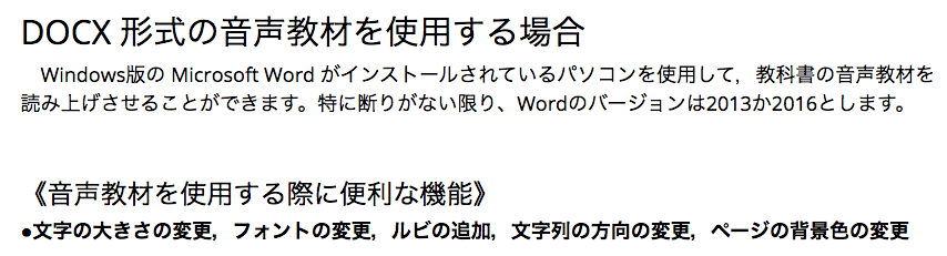 教科書や図書のデジタルデータを、DOCX 、EPUB という形式で提供されます。