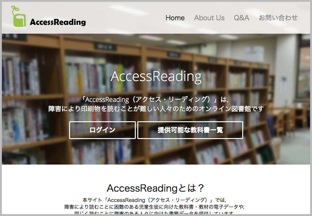 AccessReadingとは、東京大学先端科学研究センター・人間支援工学分野と、センター内の大学図書館が共同で運営している、オンライン図書館。
